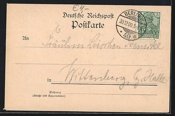 alte Ansichtskarte, gelaufen 1900, guter Zustand