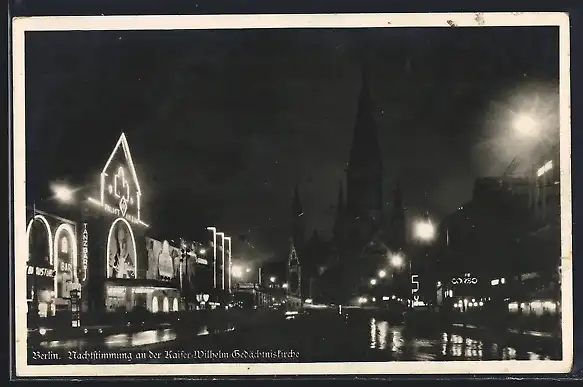 AK Berlin-Charlottenburg, Nachtstimmung an der Kaiser Wilhelm-Gedächtniskirche