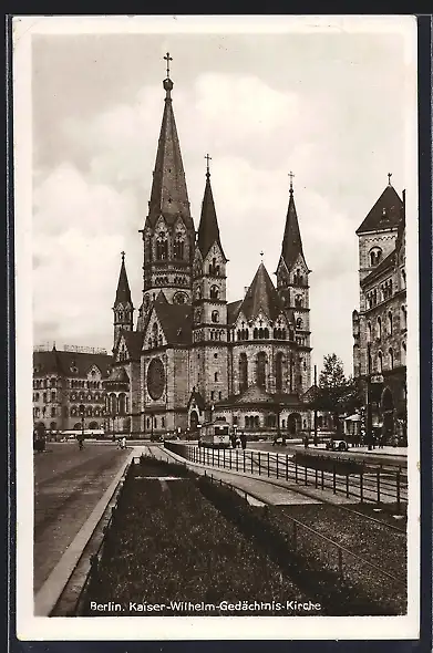 AK Berlin-Charlottenburg, Strassenbahn an der Kaiser Wilhelm-Gedächtniskirche