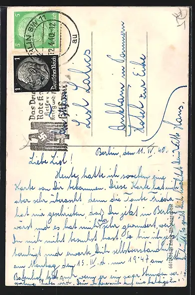 alte Ansichtskarte, gelaufen 1940, Eckknick oben li., Stempelspur, guter Zustand