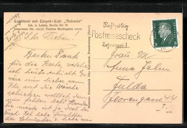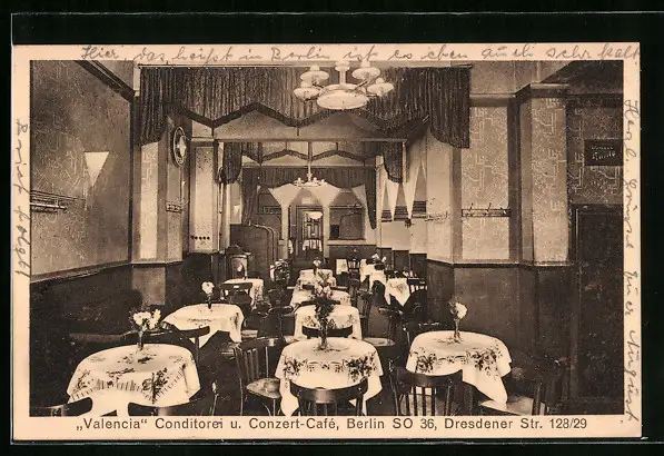 AK Berlin, Conditorei und Conzert-Café Valencia in der Dresdener Strasse 128 /29