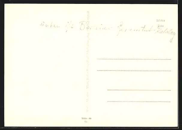 Personenbezogene Daten auf der Rückseite der Karte wurden durch blauen Textmarker unkenntlich gemacht. Die blauen Stellen sind auf die Vorderseite durchgeweicht und wirken sich negativ auf das Postkartenfoto aus