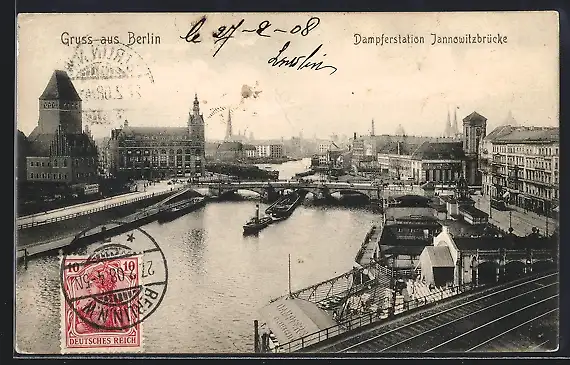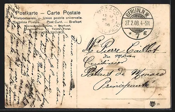 alte Ansichtskarte, gelaufen 1908, Stempelspur, guter Zustand