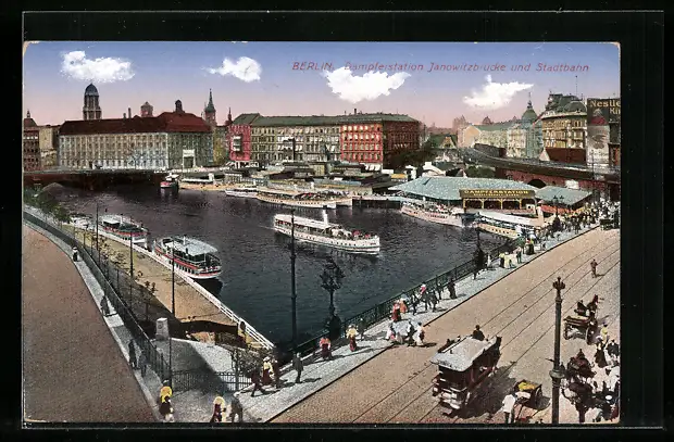 AK Berlin, Dampferstation Jannowitzbrücke und Stadtbahn