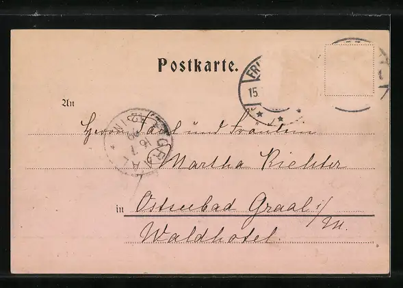 alte Ansichtskarte, gelaufen 1899, Briefmarke entfernt, guter Zustand