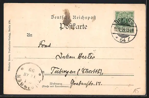 alte Ansichtskarte, gelaufen 1899, guter Zustand