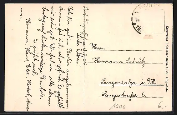 alte Ansichtskarte, gelaufen, Briefmarke entfernt, rückseitig Oberflächenschaden, guter Zustand