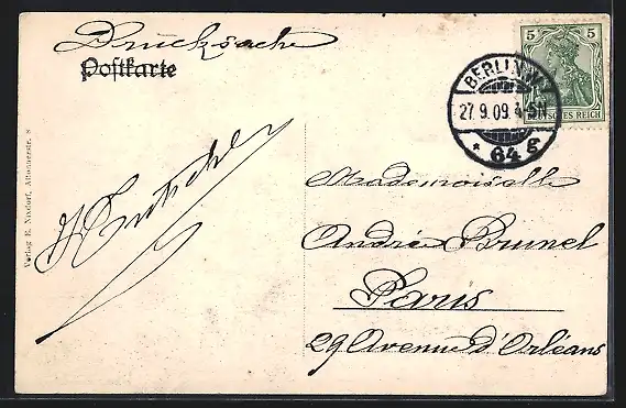 alte Ansichtskarte, gelaufen 1909, Stempelspur, guter Zustand