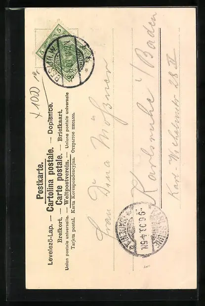 alte Ansichtskarte, gelaufen 1903, guter Zustand