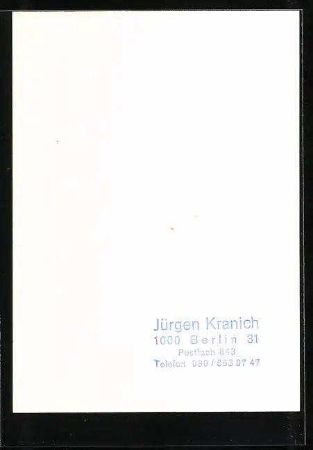 Personenbezogene Daten auf der Rückseite der Karte wurden durch blauen Textmarker unkenntlich gemacht. Die blauen Stellen sind auf die Vorderseite durchgeweicht und wirken sich negativ auf das Postkartenfoto aus