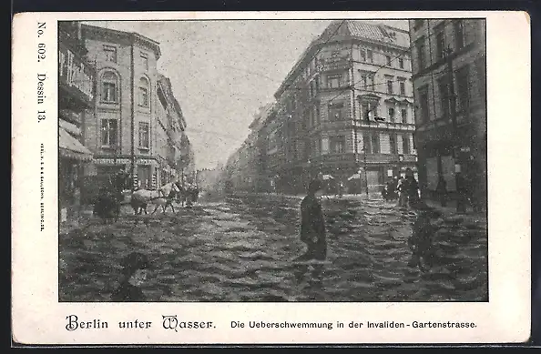 AK Berlin, Die Überschwemmung in der Invaliden - Gartenstrasse