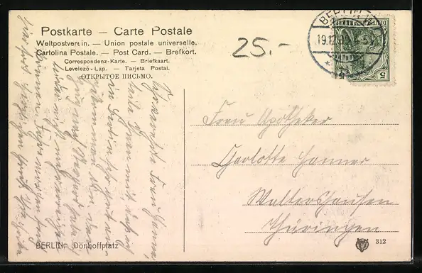 alte Ansichtskarte, gelaufen 1909, guter Zustand