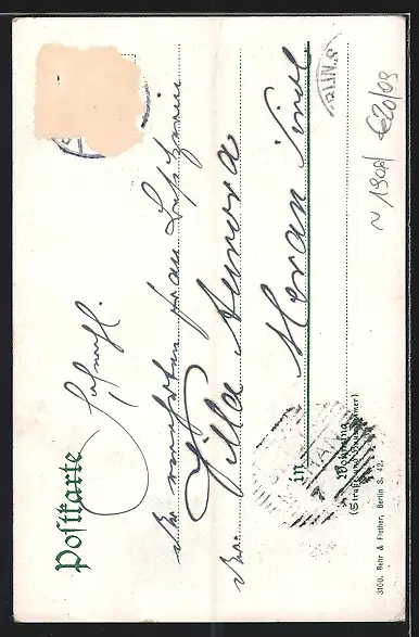 alte Ansichtskarte, gelaufen, Briefmarke entfernt, rückseitig Oberflächenschaden, guter Zustand