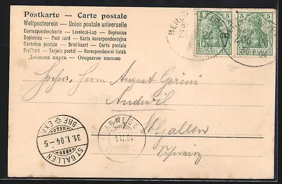 alte Ansichtskarte, gelaufen 1904, guter Zustand