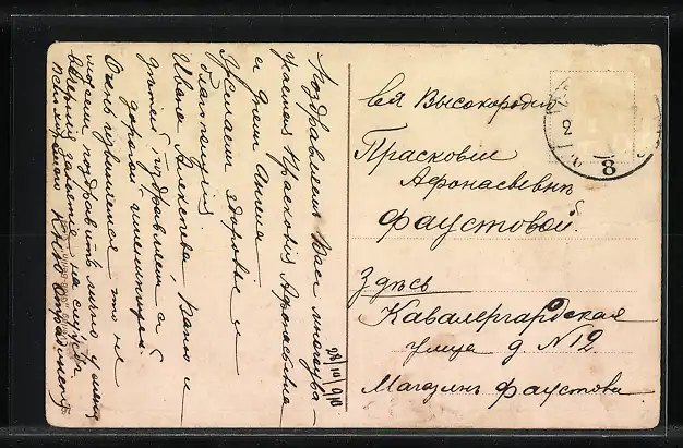 gelaufen 1910, Ecken bestoßen, Briefmarke entfernt, rückseitig Oberflächenschaden, guter Zustand