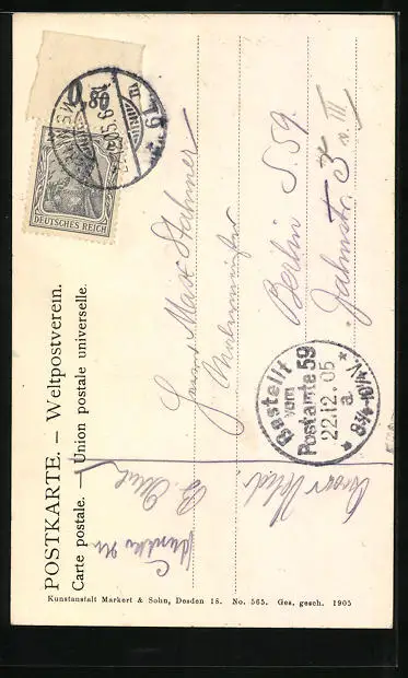 alte Ansichtskarte, gelaufen 1905, guter Zustand