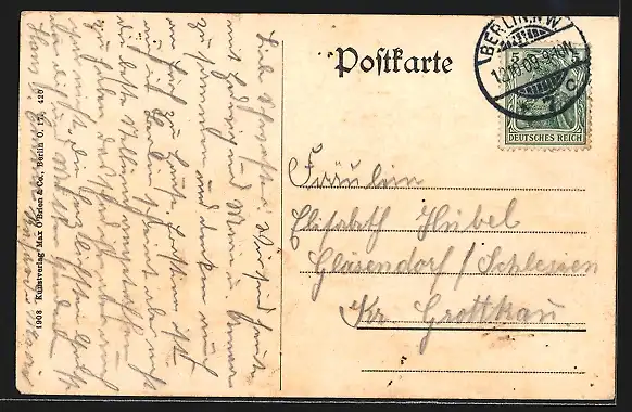 alte Ansichtskarte, gelaufen 1909, Stempelspur, guter Zustand