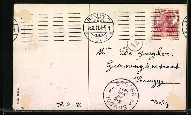 gelaufen 1911, Eckknick oben rechts, guter Zustand