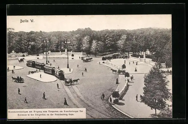 AK Berlin, Eingang zum Tiergarten am Brandburger Tor, Strassenbahn