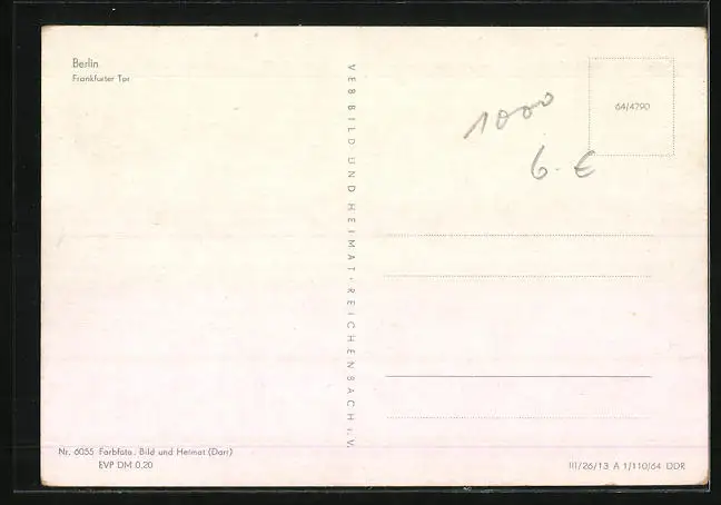 Personenbezogene Daten auf der Rückseite der Karte wurden durch blauen Textmarker unkenntlich gemacht. Die blauen Stellen sind auf die Vorderseite durchgeweicht und wirken sich negativ auf das Postkartenfoto aus