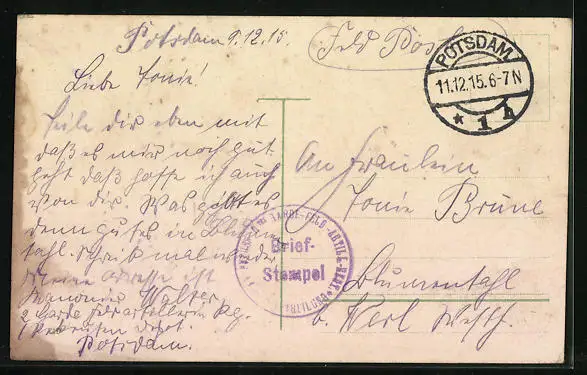 alte Ansichtskarte, gelaufen 1915, Eckknick rechts unten, guter Zustand