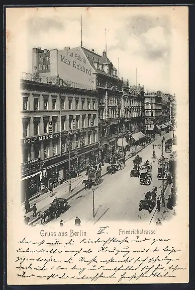 AK Berlin, Friedrichstrasse mit Hutfabrik Max Eckard
