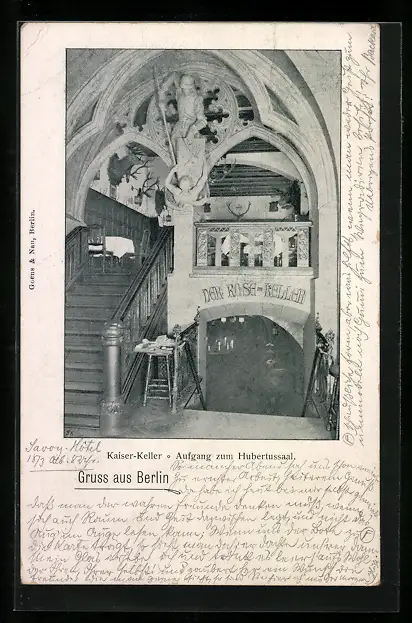 AK Berlin, Gasthaus Kaiser-Keller, Aufgang zum Hubertussaal