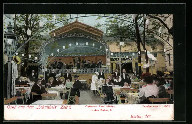 AK Berlin, Gasthaus Schultheis, Zelt 3, Ferd. Möller