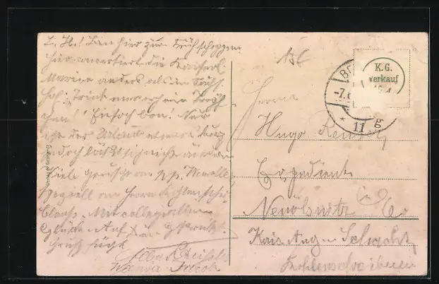 alte Ansichtskarte, gelaufen, Briefmarke entfernt, rückseitig Oberflächenschaden, Eckknick re. unten, guter Zustand