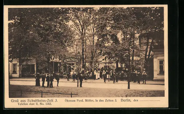 AK Berlin, Gasthaus Schultheiss-Zelt 3, Ferd. Möller