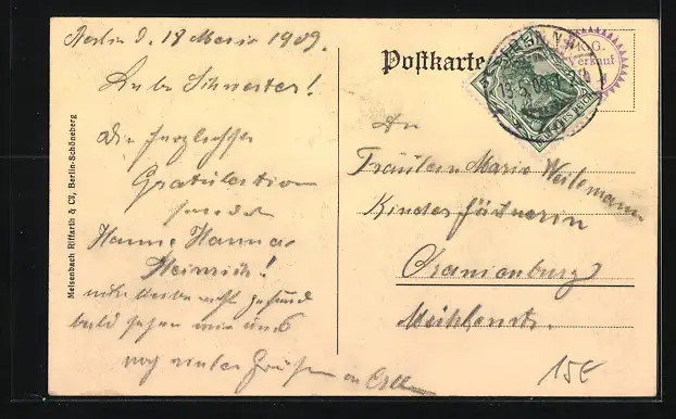 alte Ansichtskarte, gelaufen 1909, guter Zustand