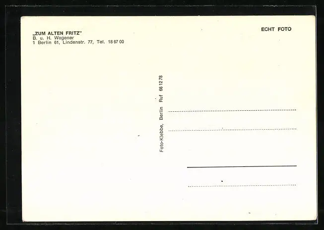 AK Berlin, Gasthaus Zum Alten Fritz, Lindenstrasse 77