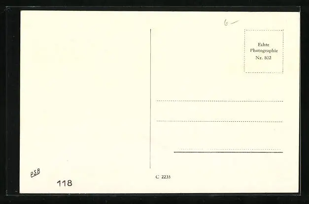 Personenbezogene Daten auf der Rückseite der Karte wurden durch blauen Textmarker unkenntlich gemacht. Die blauen Stellen sind auf die Vorderseite durchgeweicht und wirken sich negativ auf das Postkartenfoto aus