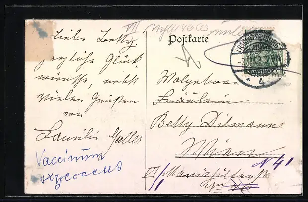 alte Ansichtskarte, gelaufen 1909, rückseitig Klebe- und Papierreste, rückseitig Oberflächenschaden, guter Zustand