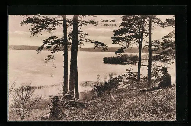 AK Berlin-Grunewald, Mann am Ufer von Lindwerder