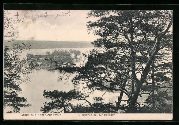 AK Berlin-Grunewald, Uferpartie bei Lindwerder
