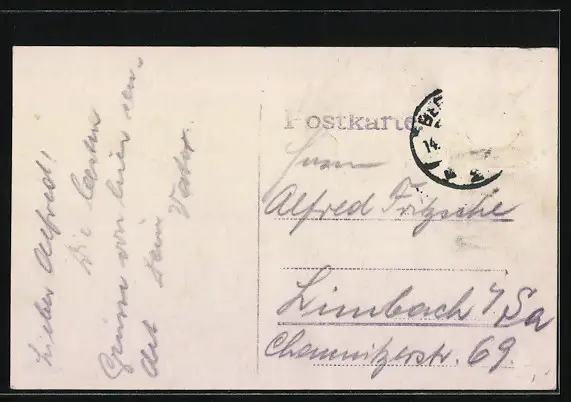 alte Ansichtskarte, gelaufen, Briefmarke entfernt, guter Zustand