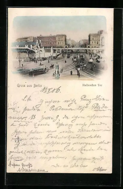 AK Berlin, Hallesches Tor mit Strassenbahn