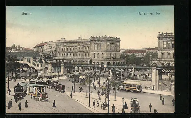 AK Berlin, Hallesches Tor mit Strassenbahn