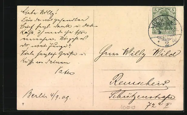 alte Ansichtskarte, gelaufen 1909, guter Zustand