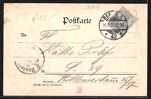 alte Ansichtskarte, gelaufen 1901, guter Zustand