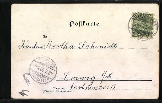 alte Ansichtskarte, gelaufen 1900, guter Zustand