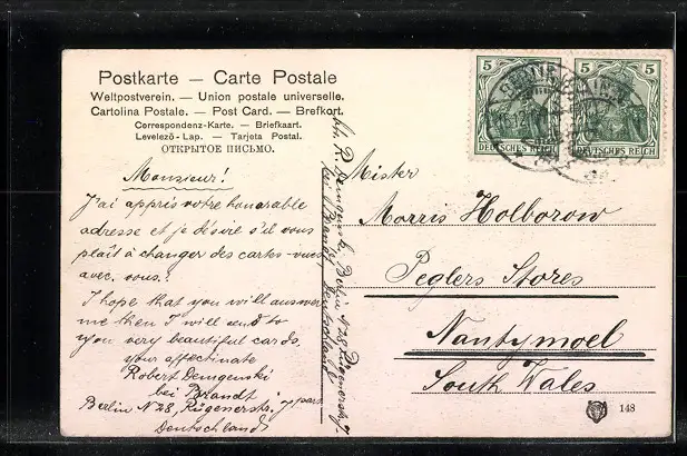alte Ansichtskarte, gelaufen 1909, guter Zustand