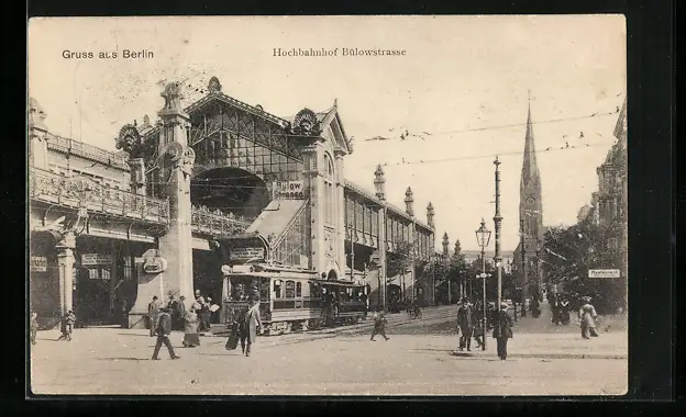 AK Berlin, Hochbahnhof Bülowstrasse mit Strassenbahn