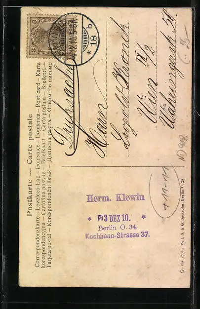 alte Ansichtskarte, gelaufen 1910, guter Zustand
