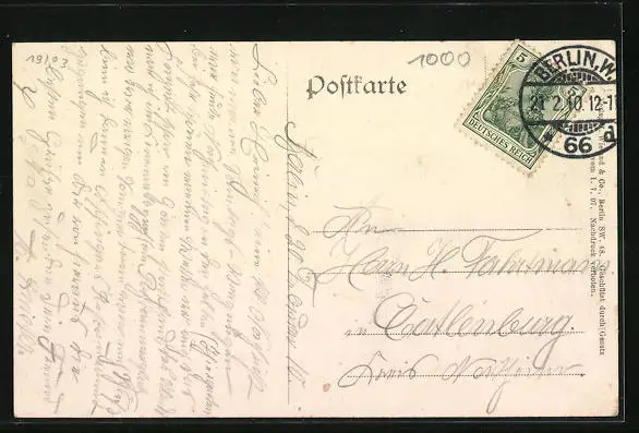 alte Ansichtskarte, gelaufen 1910, guter Zustand