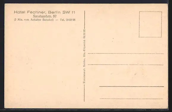 AK Berlin, Hotel Fechner in der Saarlandstrasse 57