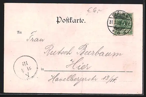 alte Ansichtskarte, gelaufen 1900, guter Zustand