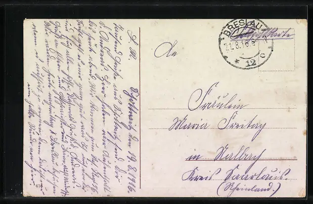 gelaufen 1916, Ecken bestoßen, guter Zustand