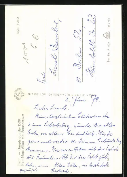 AK Berlin, Karl-Marx-Allee mit Fernsehturm